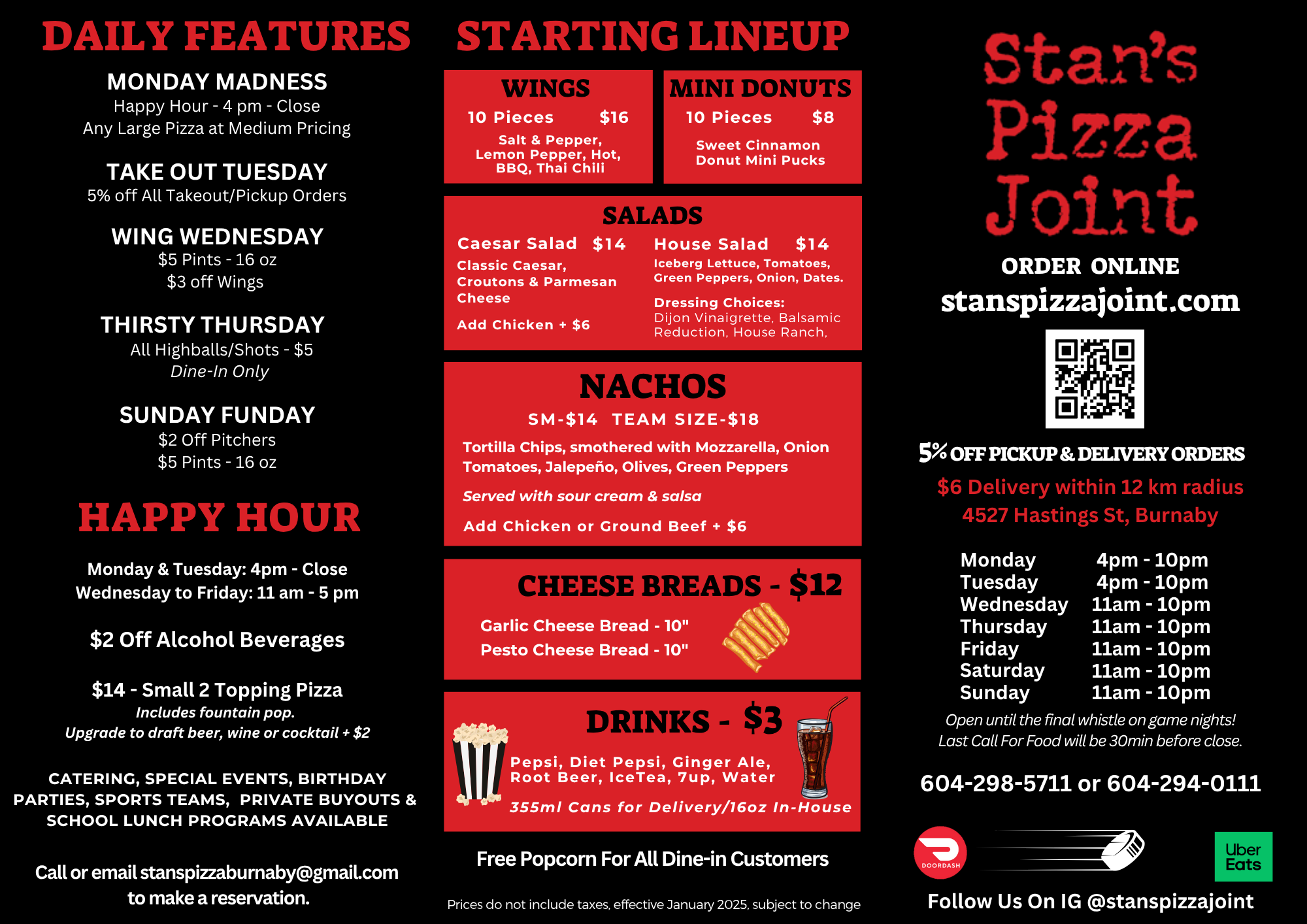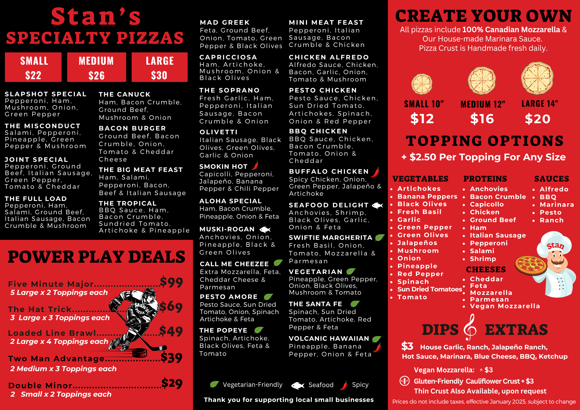 At Stan's Pizza Joint, we blend our passion for delicious food with the excitement of hockey and the joy of music, creating a vibrant and welcoming atmosphere for everyone.